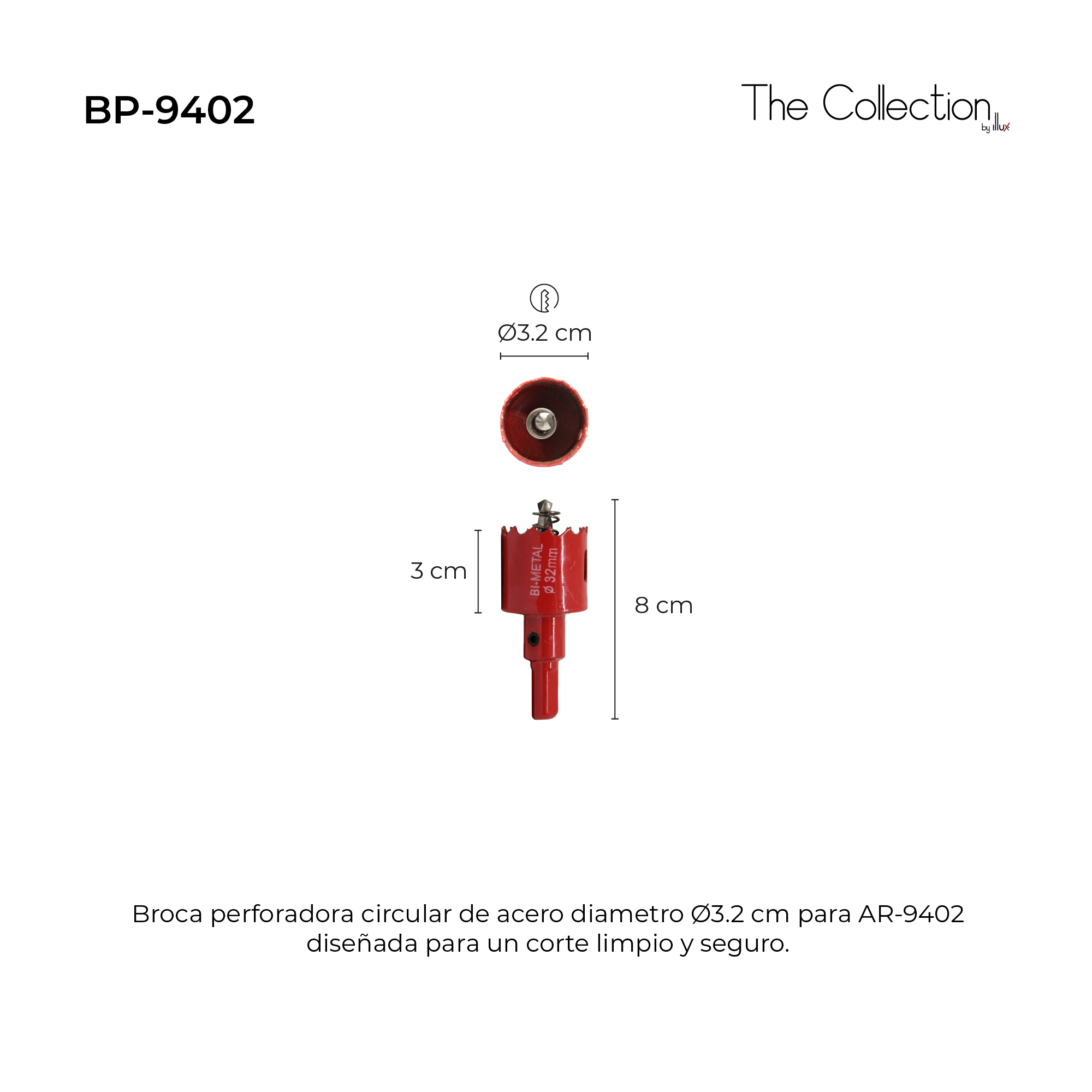 The Collection Broca Perforadora Circular De Acero Diámetro 32 Mm Para AR-9402 BP-9402