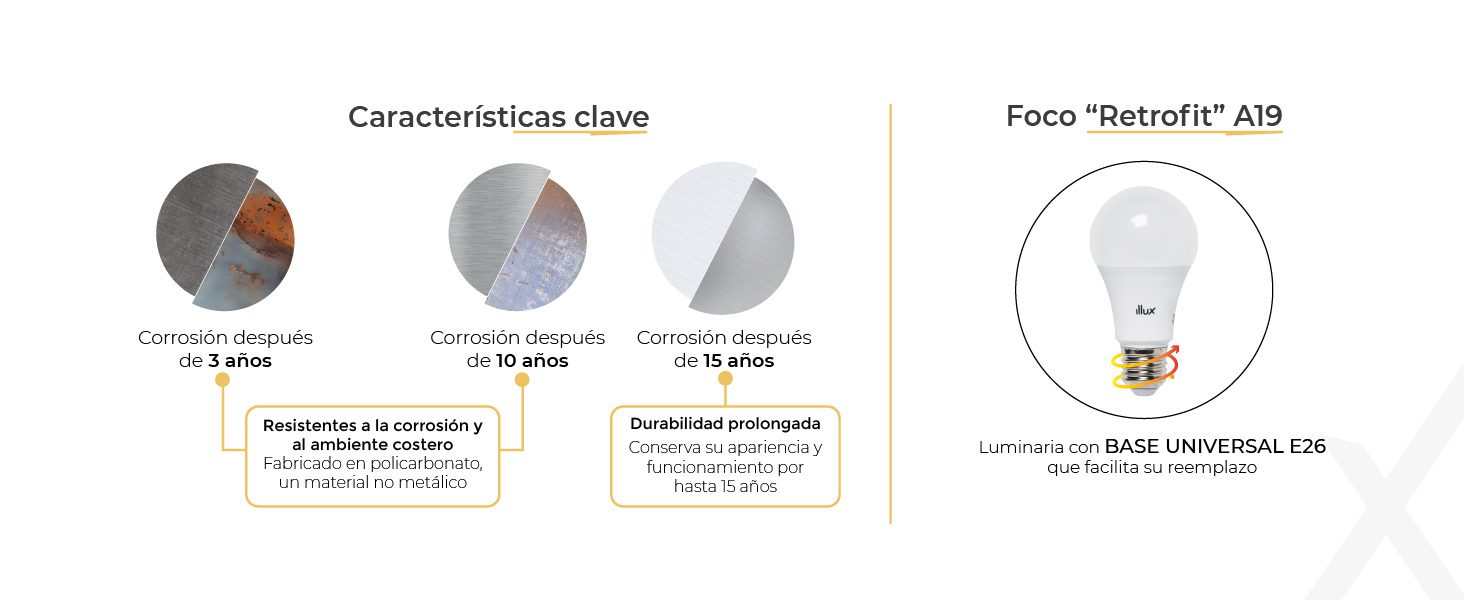 Fabricada con materiales de alta calidad, PP y PS, esta luminaria ofrece resistencia a la intemperie y durabilidad para soportar las condiciones exteriores más exigentes.