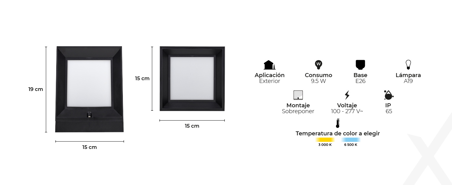 Con un acabado en negro elegante, esta luminaria es ideal para áreas verdes, fachadas y residencias, agregando un toque de estilo y funcionalidad.