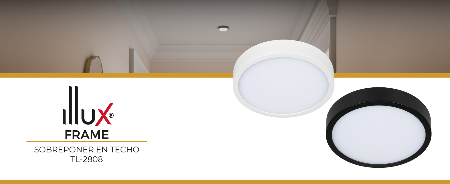 TL-2808:https://illux.com.mx/static/overlay/?productId=TL-2808.B&photos=01.png&photos=02.png&photos=03.png&photos=04.png&photos=05.png&photos=06.png&photos=07.png&photos=08.pngClave Producto Servicio:39111500Clave Unidad:H87Unidad:PiezaAcabado:Blanco, NegroMaterial:Aluminio, PlásticoMontaje:SobreponerDimensiones:140×23 mmIP:20Peso:266 gDriver:Incluido (remoto)Horas de vida:30 000 hLámpara:IncluidaTipo de aislamiento:Clase IITipo de lámpara:Sanan 2835Armónicas:>20Corriente:0.12 – 0.04 AFactor de potencia:>0.9Frecuencia:50/60 HzPotencia:12 WTemperatura de operación:-20 °C a +50 °CTensión:100 – 277 V~Ángulo de apertura:120°Flujo real:959 lmIRC:>80Temperatura de color:3 000 K, 4 000 K, 6 500 K -