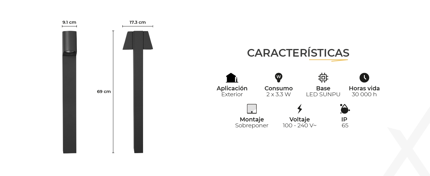 Con su diseño de sobreponer, la instalación de este luminario es rápida y sencilla. Puedes montarlo en postes, columnas o cualquier superficie plana, brindando una iluminación eficiente y estética en tus espacios exteriores.