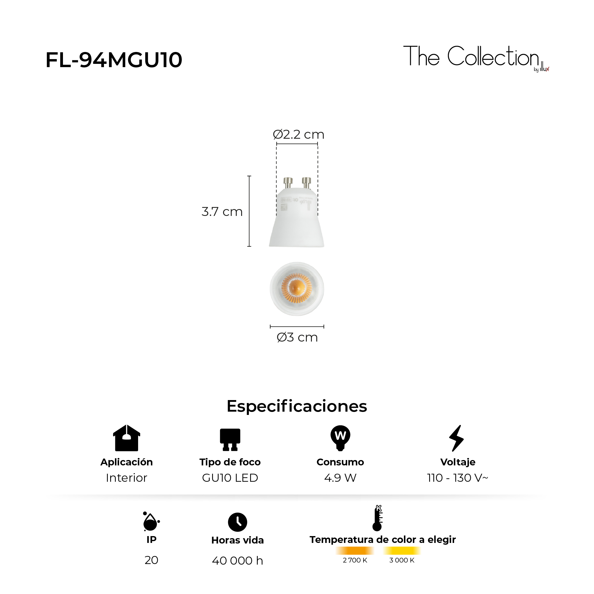 Lámpara MINI GU10 LED, base GU10, atenuable TRIAC.