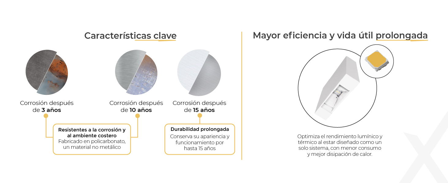 Perfecta para fachadas, pasillos, corredores, jardines y aplicaciones residenciales o hoteleras.