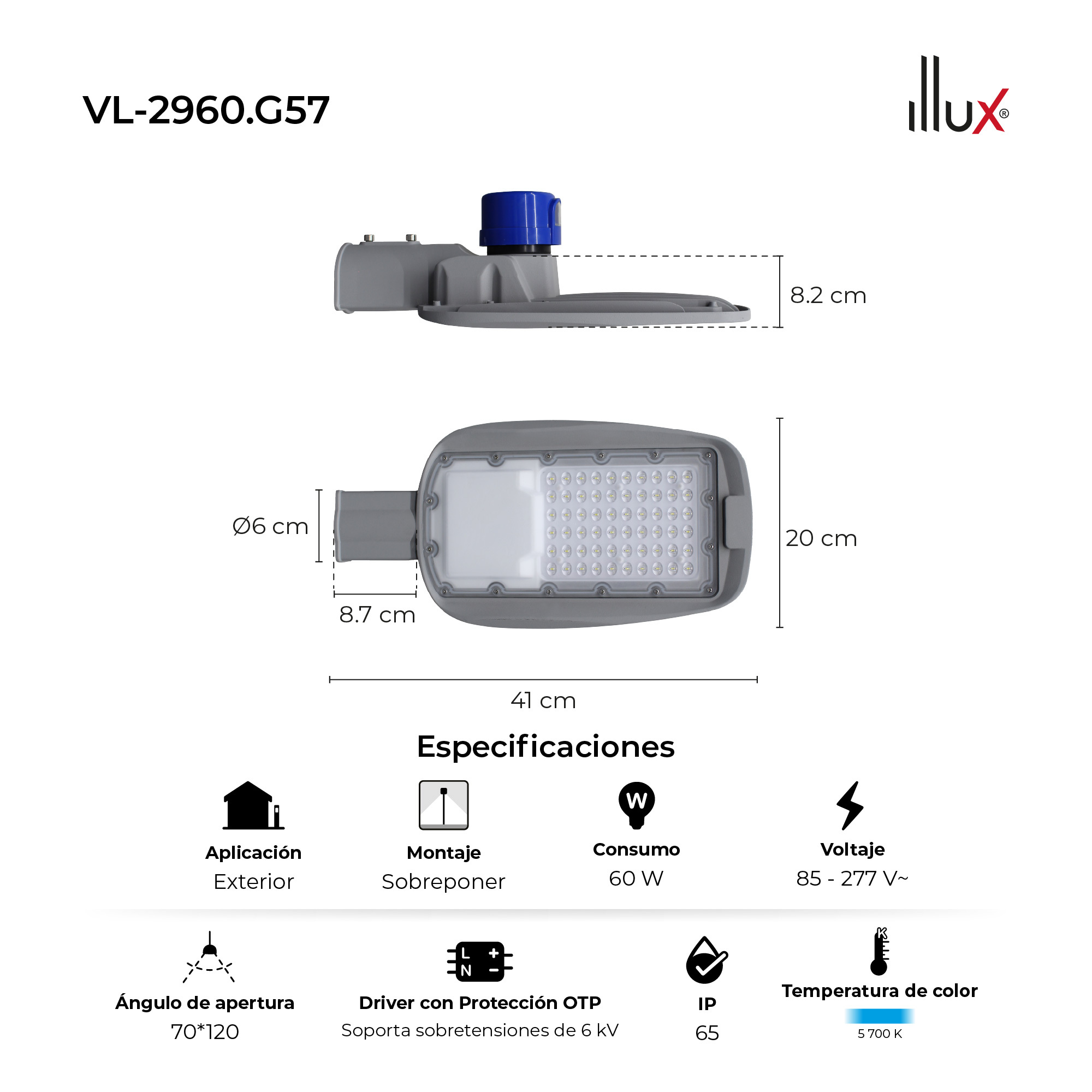 Illux Luminaria Led Vialux Urbano Vial De Sobreponer En Poste Gris 60 W 85 - 277 V~ 5 700 K Con Fotocelda VL-2960.G57