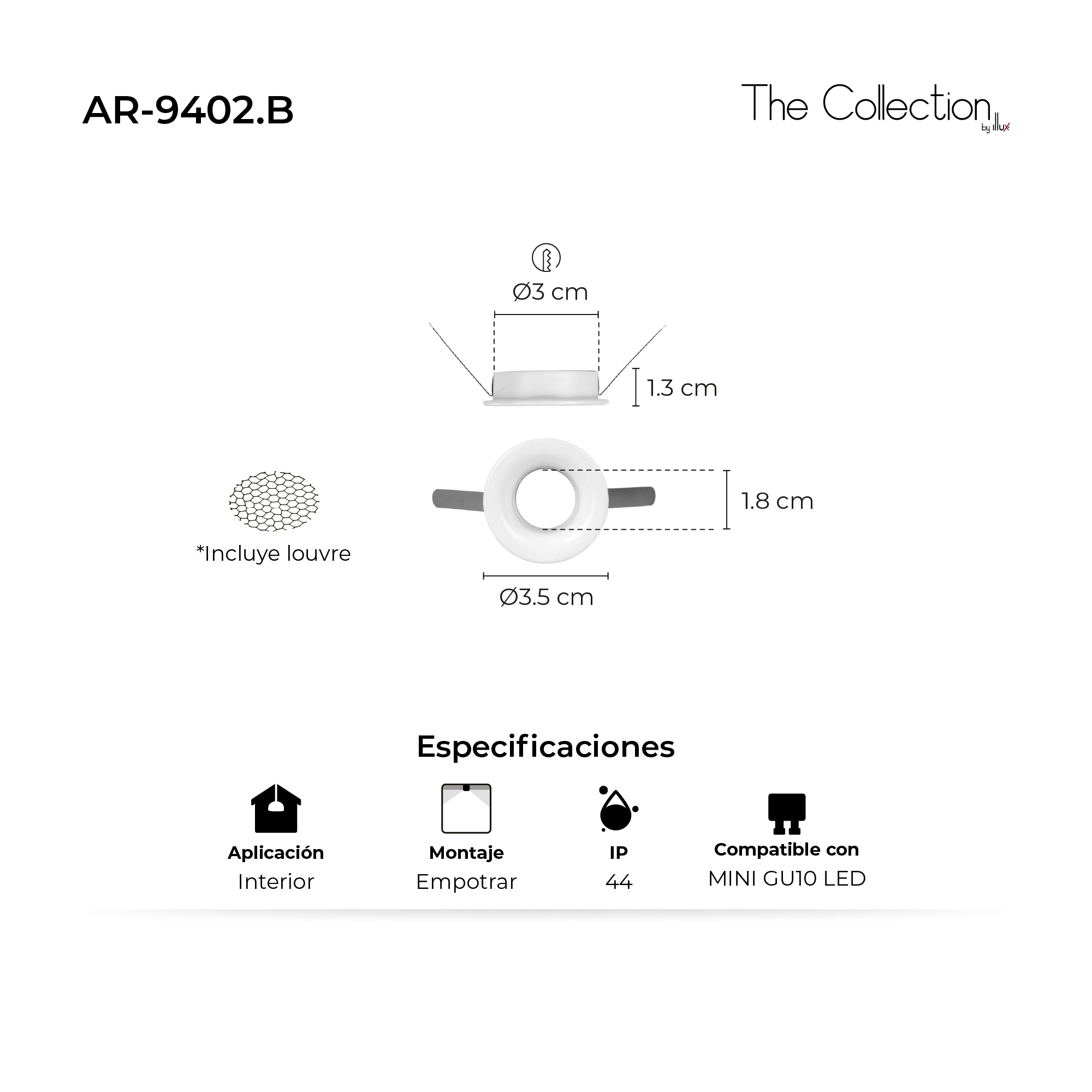 The Collection Mini Arillo Curvo Profundo Mini Gu10 Con Clips De Fijación Y Louvre Blanco Para Lámpara Mini GU10 FL-94MGU10 AR-9402.B