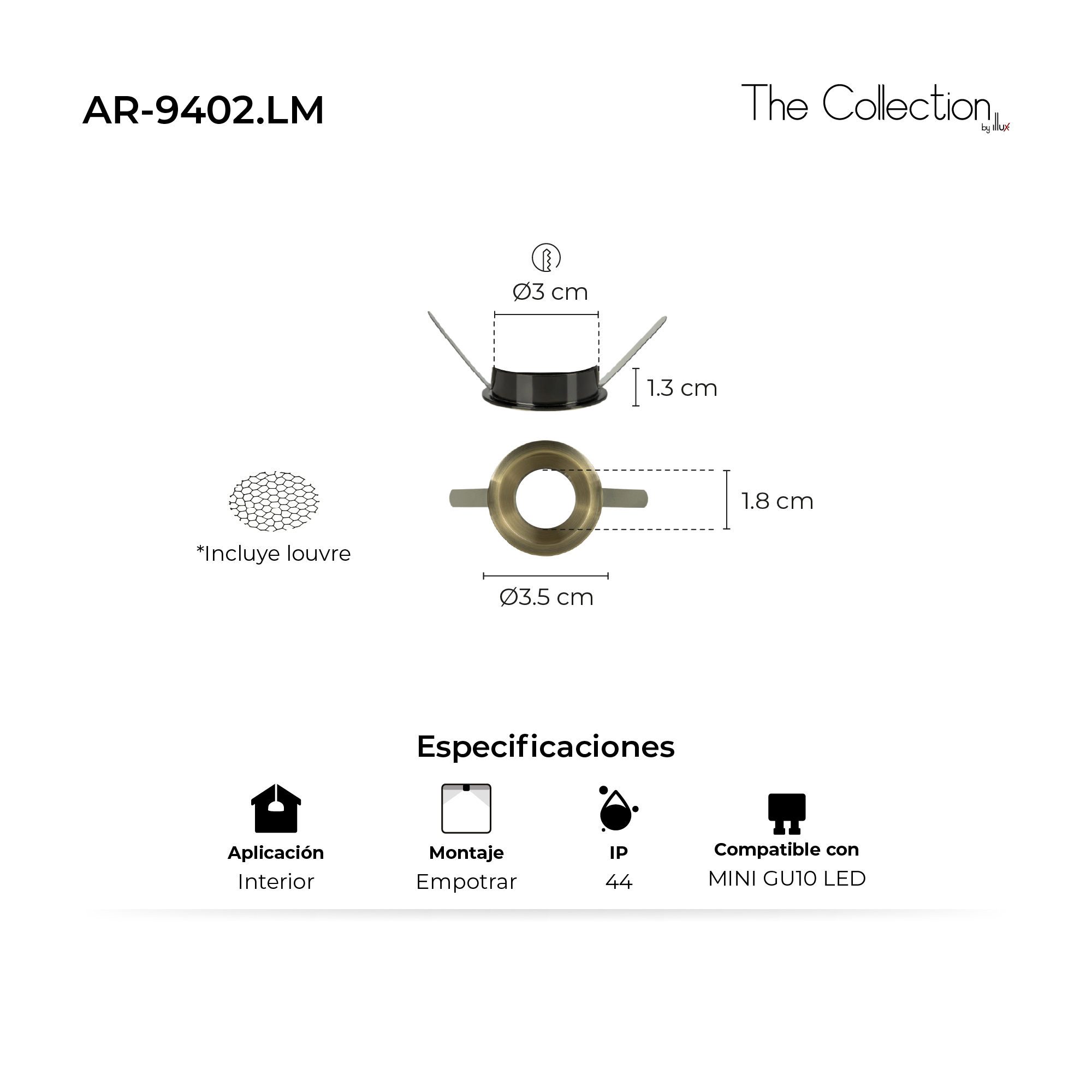 The Collection Mini Arillo Curvo Profundo Mini Gu10 Con Clips De Fijación Y Louvre Latón Mate Para Lámpara Mini GU10 FL-94MGU10 AR-9402.LM