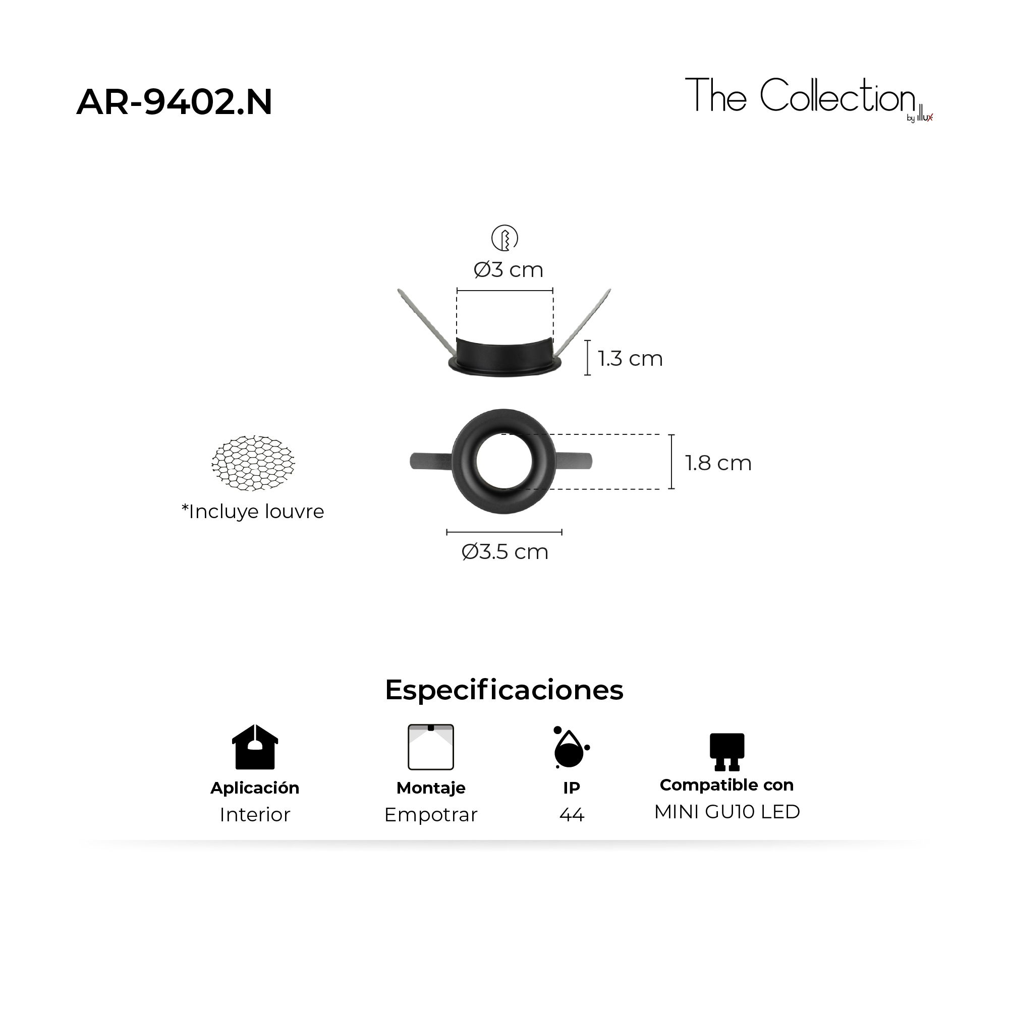 The Collection Mini Arillo Curvo Profundo Mini Gu10 Con Clips De Fijación Y Louvre Negro Para Lámpara Mini GU10 FL-94MGU10 AR-9402.N