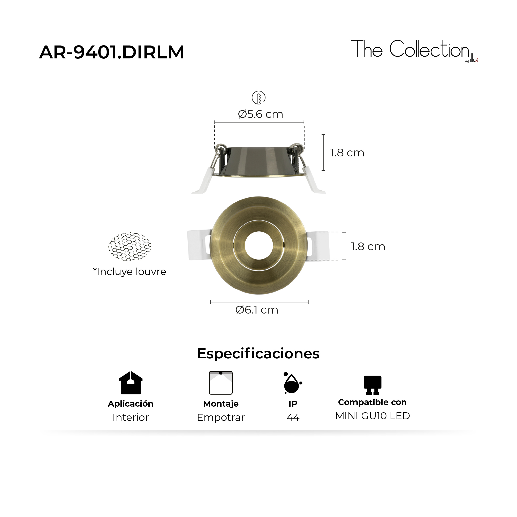 The Collection Mini Arillo Profundo Dirigible Mini Gu10 Con Clips De Fijación Y Louvre Latón Mate Para Lámpara Mini GU10 FL-94MGU10 AR-9401.DIRLM