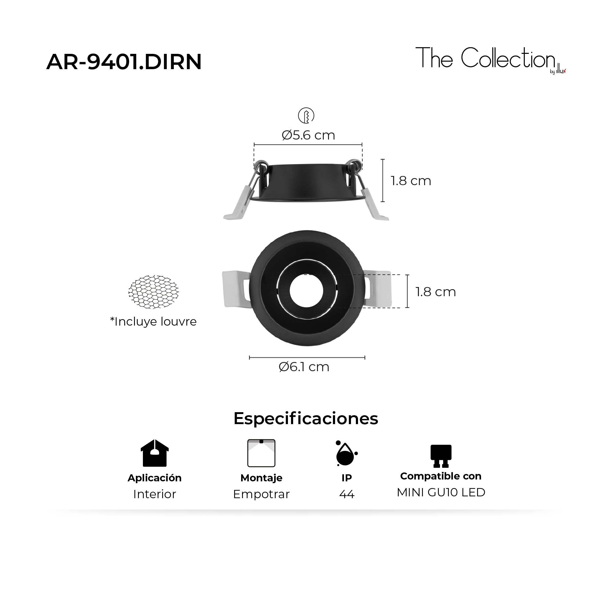 The Collection Mini Arillo Profundo Dirigible Mini Gu10 Con Clips De Fijación Y Louvre Negro Para Lámpara Mini GU10 FL-94MGU10 AR-9401.DIRN