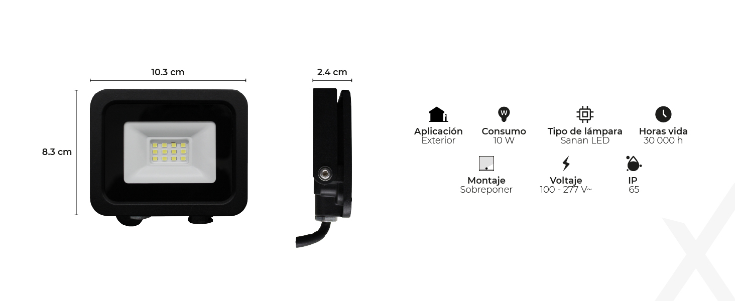 Fabricado en fundición de aluminio con vidrio templado, este reflector es apto para intemperie y cuenta con clasificación IP65. No importa si llueve o hace mucho calor, este reflector está diseñado para soportar las condiciones más adversas.