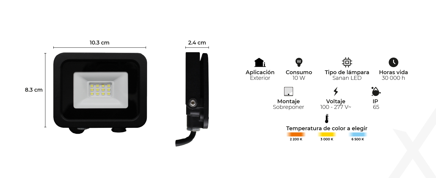 Con una potencia de 10W y una salida de luz de 900 lúmenes, este reflector ofrece una iluminación brillante y eficiente. Disfruta de una luz de calidad con un índice de reproducción cromática (IRC) mayor o igual a 80, que garantiza colores vivos y reales.